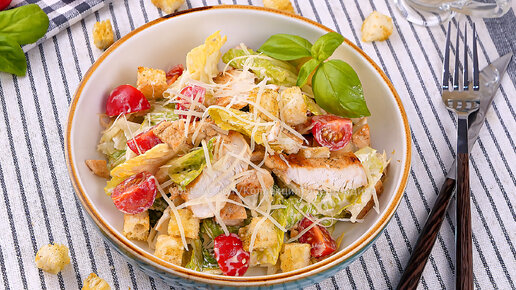 🥬Салат Цезарь с курицей🍗 и томатами черри🍅! Соус Цезарь - Классика на все времена!