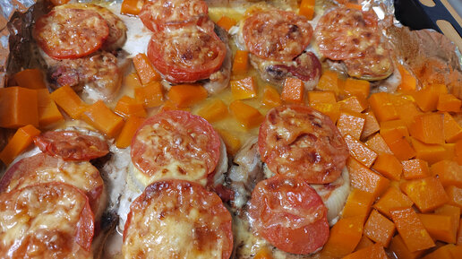 Идея вкусного, домашнего ужина, тыква со свининой, запеченая в духовке.