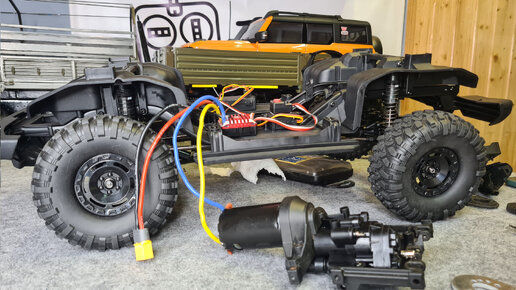 Тюнинг BELUGA Huangbo R1001. Плавность с новым регулятором. Устанавливаем мотораму от TRX4 убираем люфт.