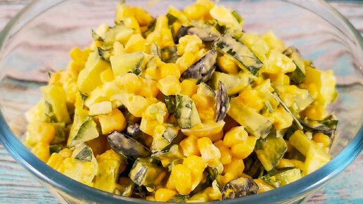 Вкусный салат с кукурузой и оливками. Очень простой и быстрый в приготовлении