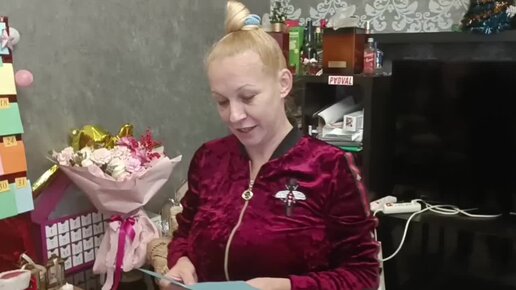 Начались задания по адвент-календарю, Танюша открывает первый конверт.