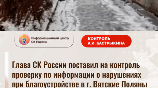Глава СК России поставил на контроль проверку по информации о нарушениях при благоустройстве в г. Вятские Поляны Кировской области
