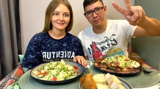 МУКБАНГ😋Пэпэ ужин, Стейк РИБАЙ🤤Салат🥗