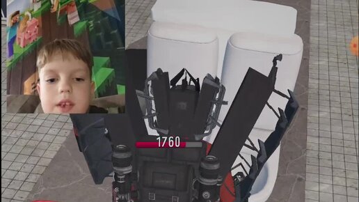 Саша пытается победить Скибиди Ученого в открытом мире в игре Туалет Файт (Toilet fight)