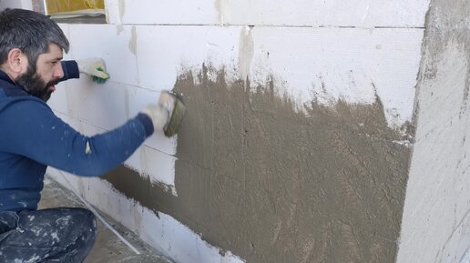 Как наносится Адгезионный Обрызг Ceresit CC81 на газобетон. Штукатурка дома без утепления, штукатурка Baumit MPA35 по маячкам, база и финиш