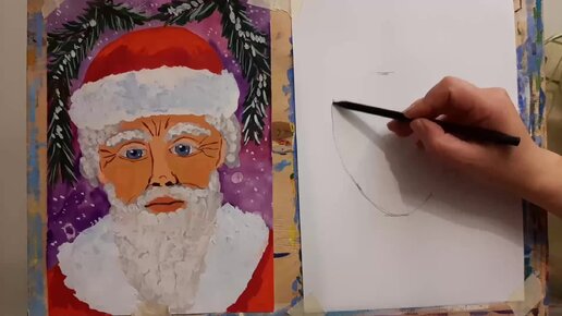 Рисуем новогодний сюжет гуашью "Портрет Деда Мороза"