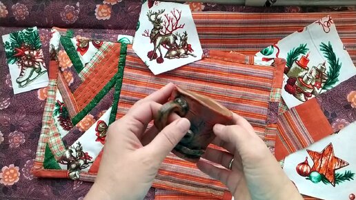 Лоскутная салфетка, ланчмат, красивая деталь сервировки и новогодний подарок для авторской керамической чашки