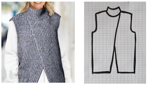 Стильный жилет с запахом для женщин среднего возраста не останется без внимания. Топ-жилет спицами, с чем носить