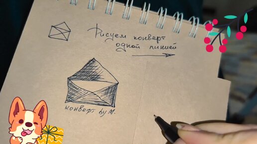 Как нарисовать открытый конверт одной линией - простой способ нарисовать конверт непрерывной линией