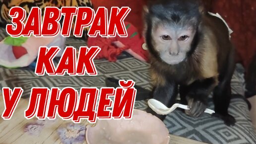 Завтрак как у людей! Маленькая домашняя обезьянка Алекса!