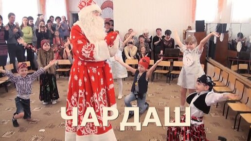 Дед Мороз и дети зажигают под звуки Чардаша и дружные аплодисменты зрителей. Общий танец на новогоднем утреннике