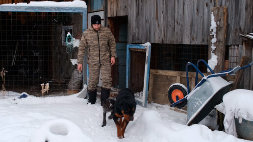 УТРО С РОТВЕЙЛЕРОМ И ДРАТХААРОМ. ВЫПАЛО МНОГО СНЕГА. КОРМИМ СОБАК