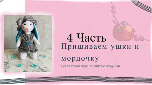 4 часть.Пришиваем ушки и мордочку.Бесплатный курс по шитью игрушки Зайки "Мии".