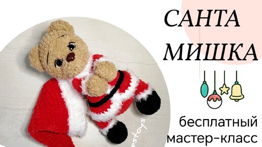 Как связать мишку, новогодний мишка крючком, плюшевый медведь, подробный МК, часть 2