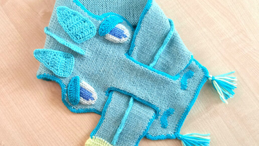 Шарф - снуд Дракон спицами на мальчика, шарф в виде Дракона спицами, детский снуд в виде Дракона спицами, шарф Дракон, снуд Дракон спицами