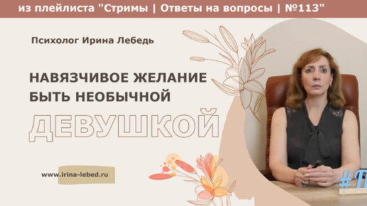 Навязчивое желание быть необычной девушкой - из плейлиста Стримы | Ответы на вопросы № 113 - психолог Ирина Лебедь