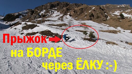 Немного горнолыжного юмора. Наш Друг очень старался перепрыгнуть ёлку на сноуборде, на горнолыжном курорте Эльбрус.