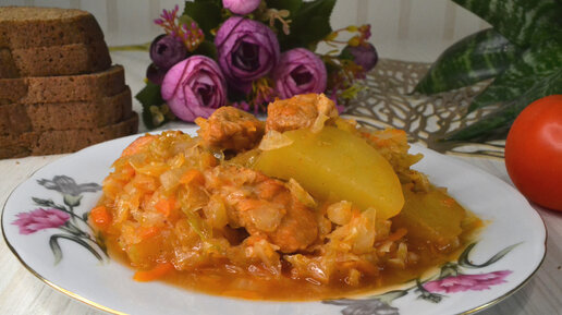 Тушеная капуста с мясом и картофелем. Вкусно, сытно, по-домашнему.