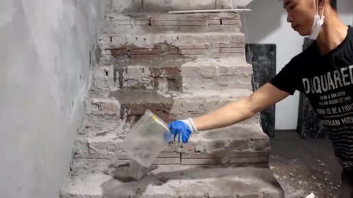 Настала очередь Вьетнама. Облицовка лестницы гранитом по-вьетнамски. Хорошая техника исполнения, но очень скользкая поверхность