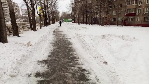 Тротуар по улице Панфиловцев и ледовые ловушки. 04.12.2023 г.