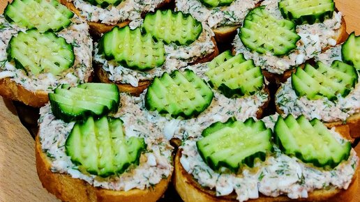 Закусочные бутерброды из консервированной рыбы на хрустящих гренках🐟