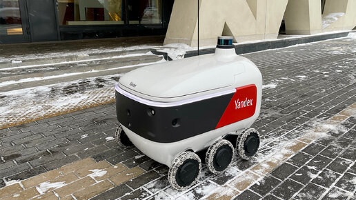 Жители Москвы оказывают помощь роботу-доставщику, который застрял в снегу