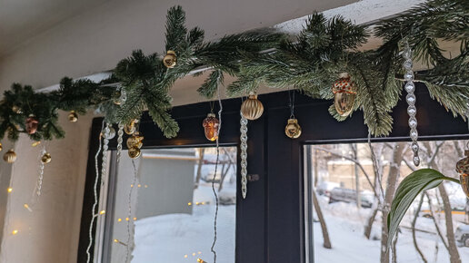Придумала, как крепить декор над окном. Украшаю кухню еловой гирляндой 🎄