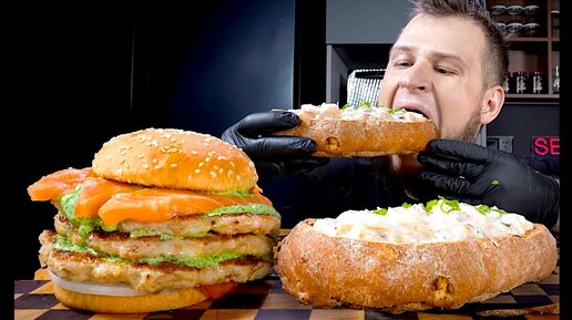 СЛИВОЧНЫЕ КРЕВЕТКИ В ХЛЕБНОЙ ЛОДКЕ, РЫБНЫЙ БУРГЕР, ASMR MUKBANG, АСМР МУКБАНГ, 먹방, 大食い, たべる, 谢尔盖