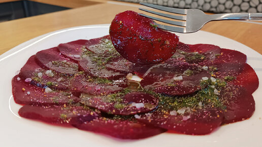 ЗАКУСКА ИЗ СВЕКЛЫ в стиле карпаччо, с укропным маслом, сушеным чесноком и морской солью