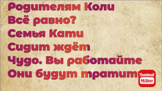 Всё в кучу. Родителям Коли всё равно? Семья Кати сидит ждёт чудо. Вы работайте -они будут тратить