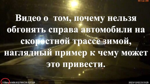 Видео о том, почему нельзя обгонять справа автомобили на скоростной трассе зимой, наглядный пример к чему может это привести.