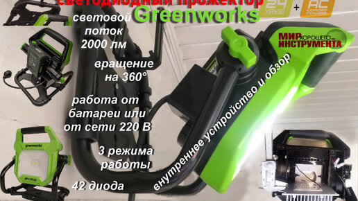 внутреннее устройство и обзор светодиодного прожектора Greenworks G24WL