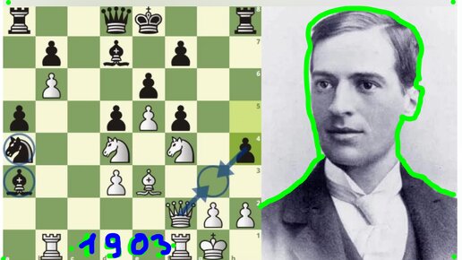 Гарри Нельсон Пильсбери играет белыми против Тейхмана в Монте-Карло, 1903. Конечно же, четкая победа в блестящем позиционном стиле, 1-0