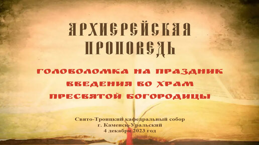 Проповедь Преосвященного Мефодия «Головоломка на праздник Введения во храм Пресвятой Богородицы»