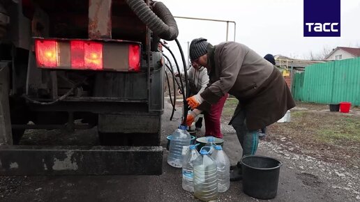 Горожане в пункте подвоза воды в Ленинском районе Донецка
