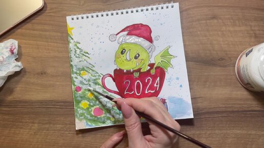 Дракончик акварелью - символ года. Акварельный скетчинг.