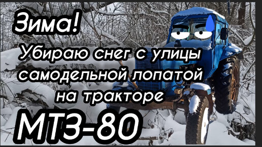 Уборка улицы от снега,самодельной лопатой на советсом тракторе Мтз- 80#тракторист#мтз#трактора