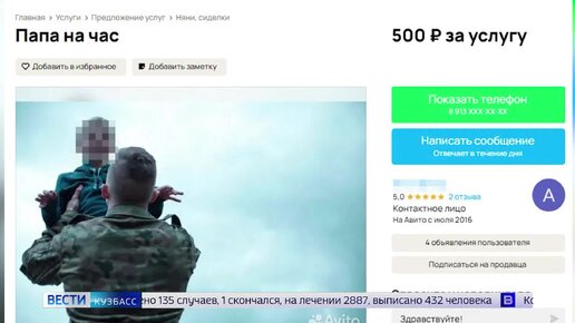 В Кузбассе появилась услуга "папа на час". Объявление разместили на одном из сайтов