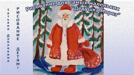 Рисование для самых маленьких, рисуем гуашью Дедушку Мороза