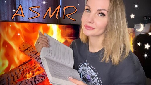 АСМР - чтение книги у камина со звуками огня, близкий шепот/ ASMR