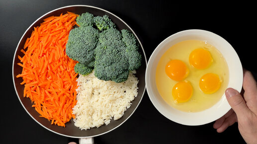 Просто залил рис, брокколи и морковь яйцами. Обжарил и результат меня удивил