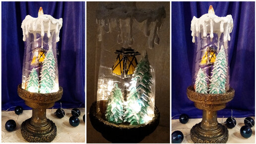 Сделала нрвогоднюю красоту из ненужного хлама Новогодние поделки своими руками. Зимняя композиция с ёлочками и фонарем на ножке.