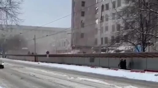 Кирпичная стена обрушилась при сносе здания у метро "Менделеевская" в Москве.