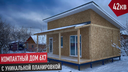 КОМПАКТНЫЙ ДОМ 6Х7 из СИП ПАНЕЛЕЙ. Уникальная планировка с двумя спальнями. Дом с плоской кровлей.