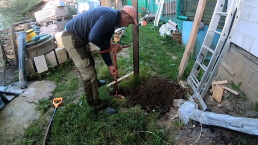 Бурю лунки ,но не для рыбалки а для бетонных столбов