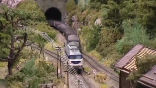 Макет в ТТ масштабе. Модели поездов движутся по макету. (1:120)