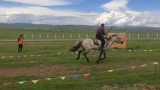 Стрельба на ходу с коня с лука на "Даншиг Наадам-Хурэ Цам 2023"