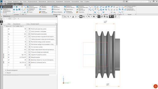 Параметрическая модель шкива ГОСТ 20889 тип 1