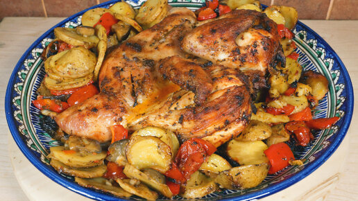 Курица с овощами в духовке в маринаде с травами