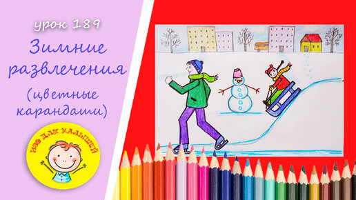 Как нарисовать ЗИМНИЕ РАЗВЛЕЧЕНИЯ. УРОК 189 Тема: "зимние развлечения"- цветные карандаши